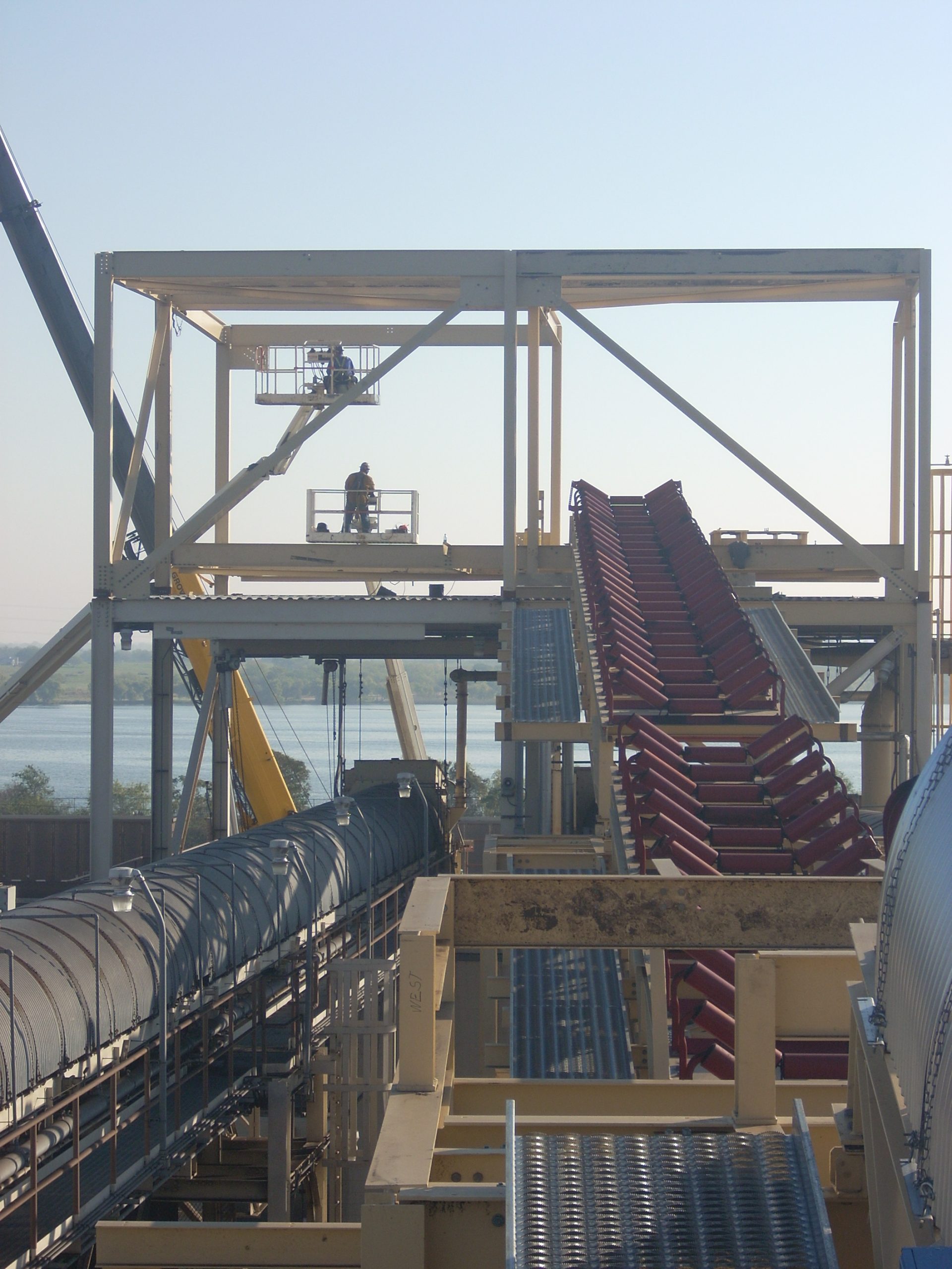 NAFCO contracted for the design, supply, electrical design, detailing, fabrication and installation of the entire material handling system for CPS Energy at the Calaveras Lake Generating Station near San Antonio, Texas. They system which allows CPS to receive shipments of coal and transport it to the power plant. The project included the construction of a 1,500 foot rotary-plow tunnel and 72” conveyor with a capacity of 3,000 tons per hour, as well as mechanical piping systems. Also included in this project was a 300 foot 72” conveyor with a fixed tripper which has the capacity of 3,000 tons per hour. The project included over 2,600 tons of steel with a two coat sophisticated paint system applied for corrosion protection.