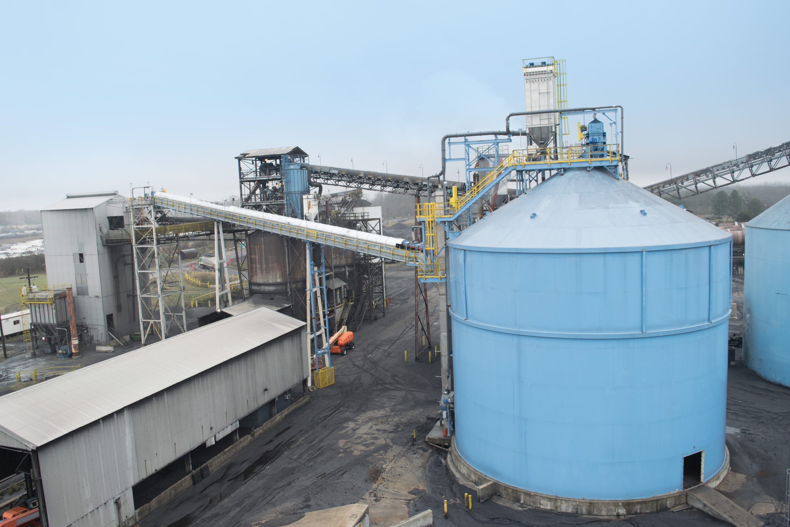 In August 2014, Wolf Point Engineers & Contractors contracted with Oxbow Calcining LLC for complete engineering, procurement, installation and commissioning (EPC) for a new screening, crushing, storage and rail loading system to be incorporated into their existing calcining facility located near Enid, Oklahoma. The new system utilizes a series of five bucket elevators and five screw conveyors with nine individual chutes with diverter gates to feed and direct calcined coke to and from screening and crushing tower. The screened and crushed calcined coke will report to three existing silos or to three new silos via bucket elevators and screw conveyors. It will be reclaimed from the new silos via screw conveyors that feed a bucket elevator discharging onto two new 36-inch conveyors with three new transfer stations, which will transport the calcined coke to the rail loading system at a rate of 200 tons per hour. The calcined coke will be loaded into rail cars on a double track utilizing a new 36-inch shuttle conveyor with a telescopic chute and a dust collection hood. Ancillary items include a new sampling system and a dust-collection and wash-down system. This project was operational in the fourth quarter of 2015.