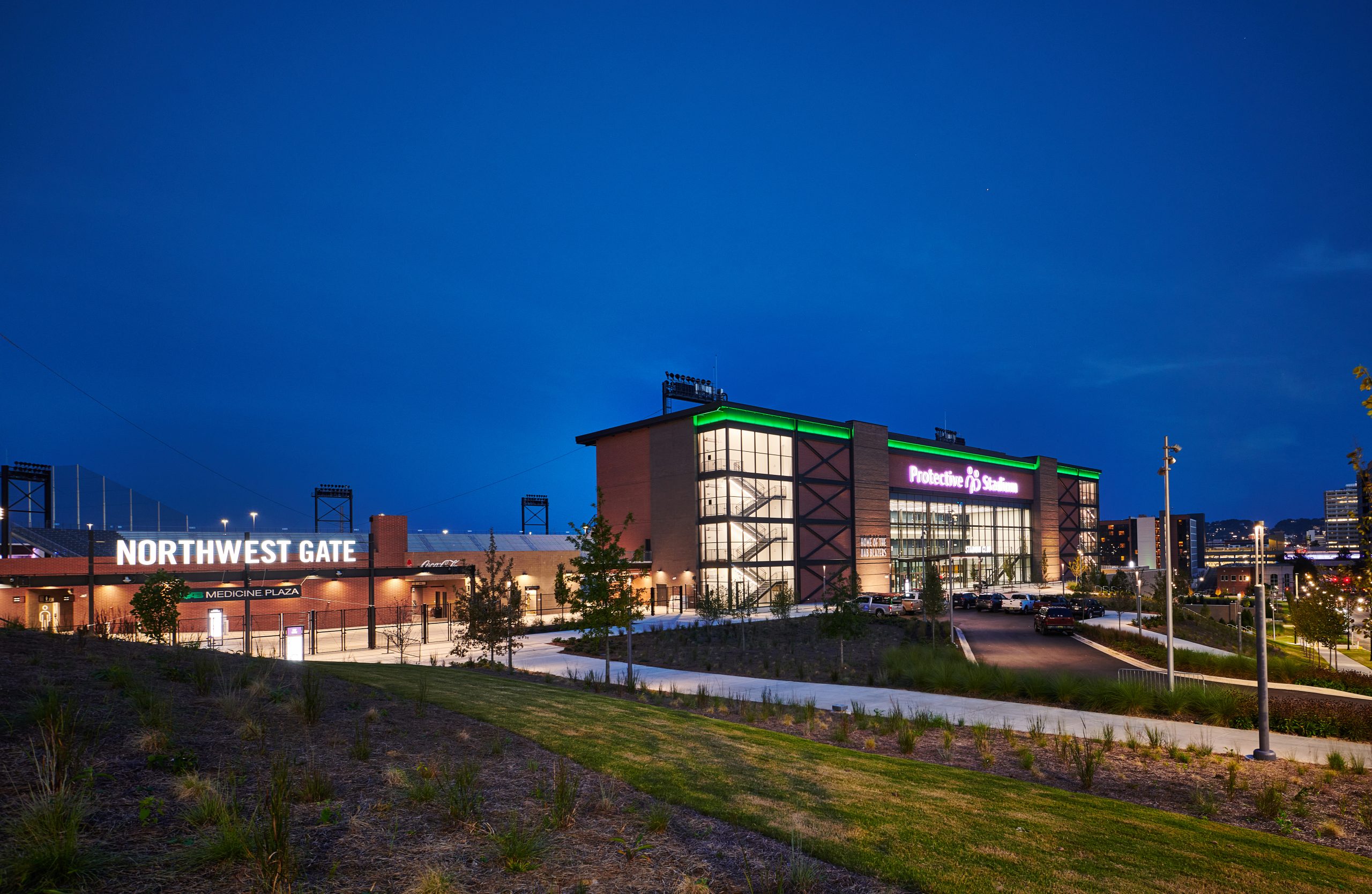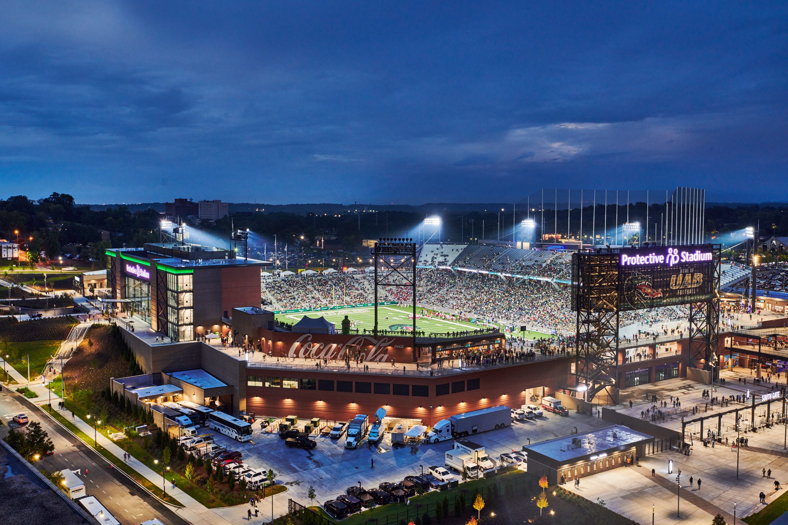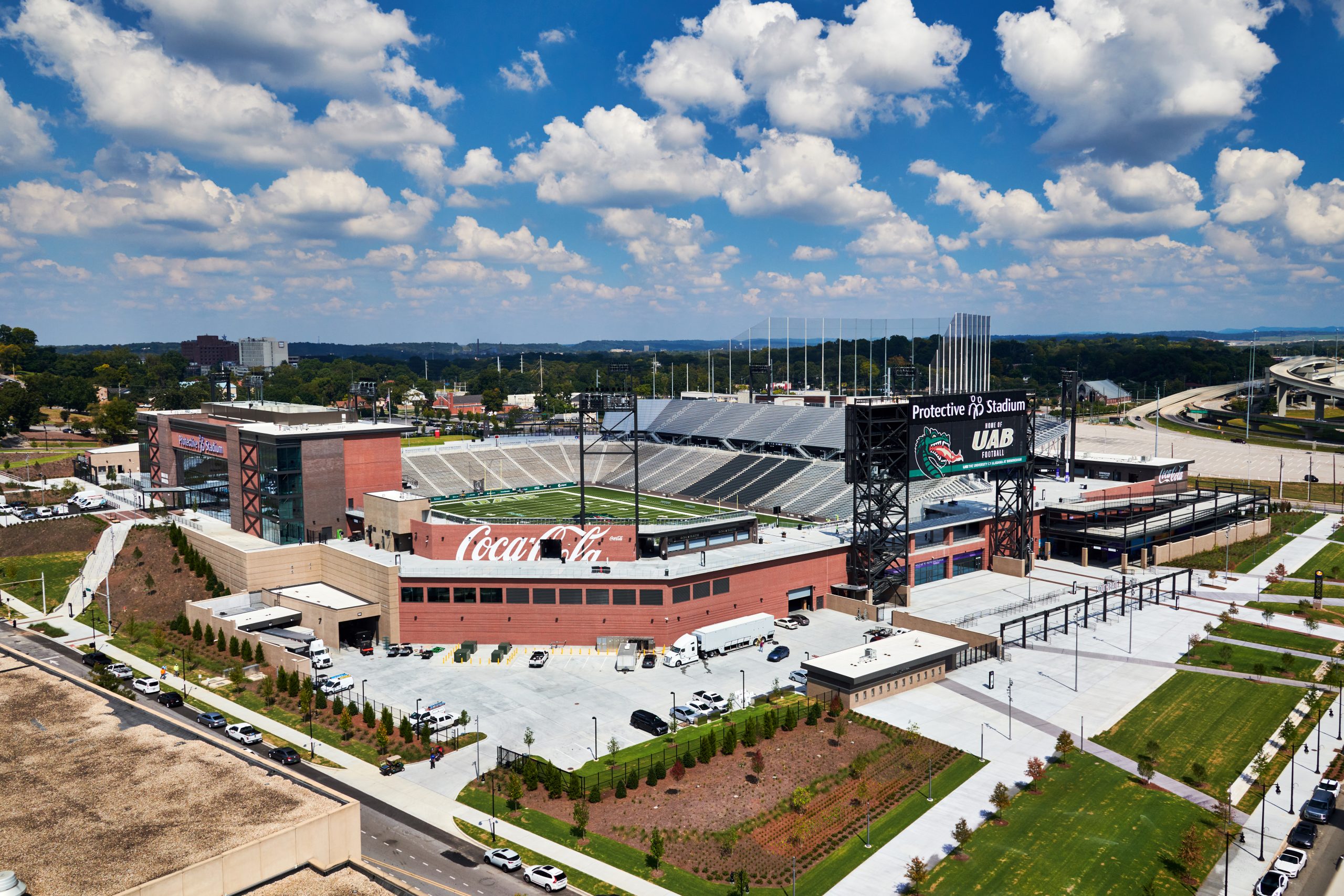 NAFCO continued to showcase our expertise in sports and stadium work with the detailing, fabrication and erection of the strutural and miscellaneous scopes for Protective Stadium. This marquee project in downtown Birmingham is home to UAB football, the USFL, and many other teams and events. NAFCO staged deliveries for just-in-time delivery from our shop to accomodate tight site conditions and worked with the project team to provide a blend of shop-applied and field-applied coatings to maximize both effeciency and aesthetics.