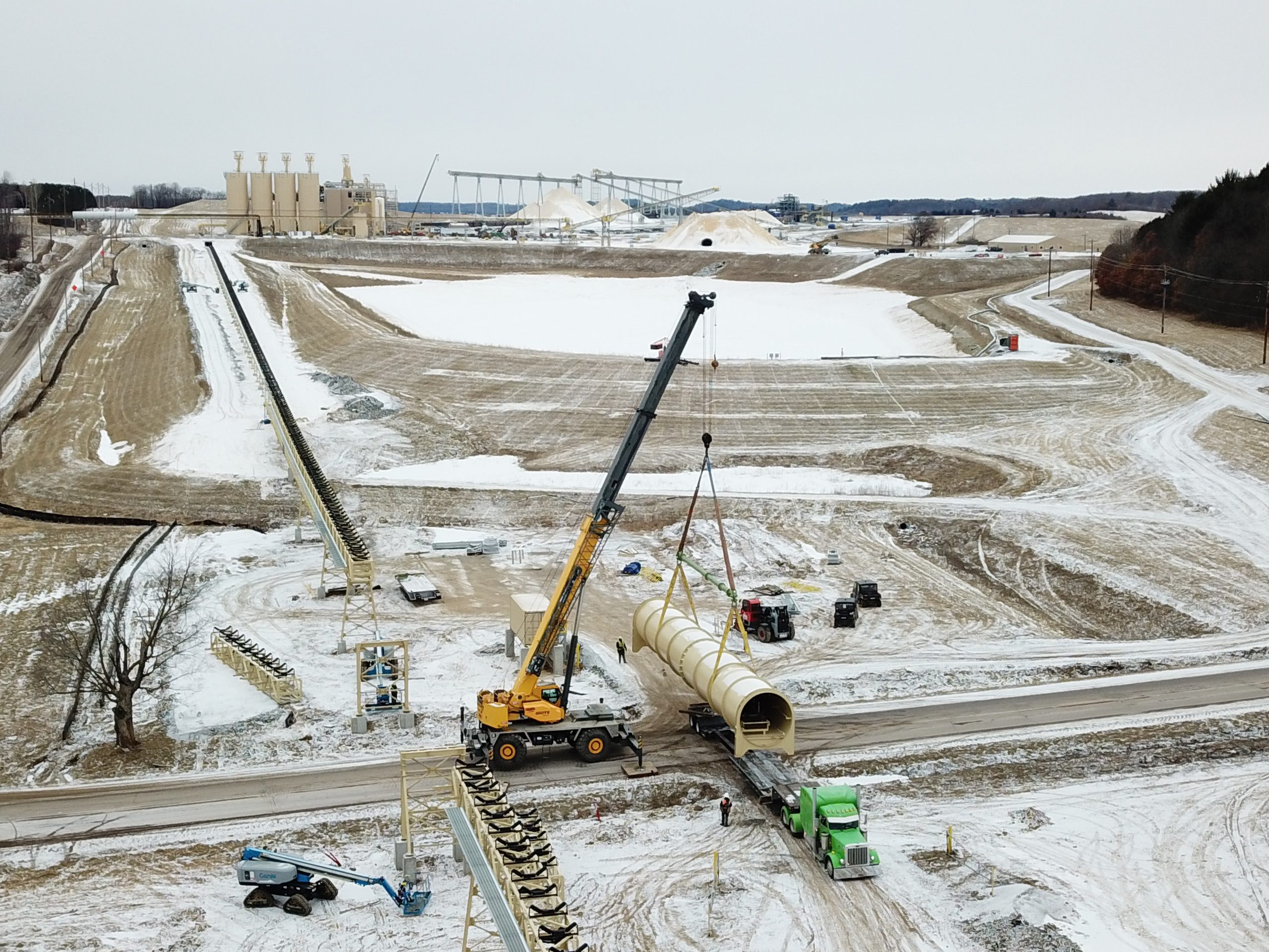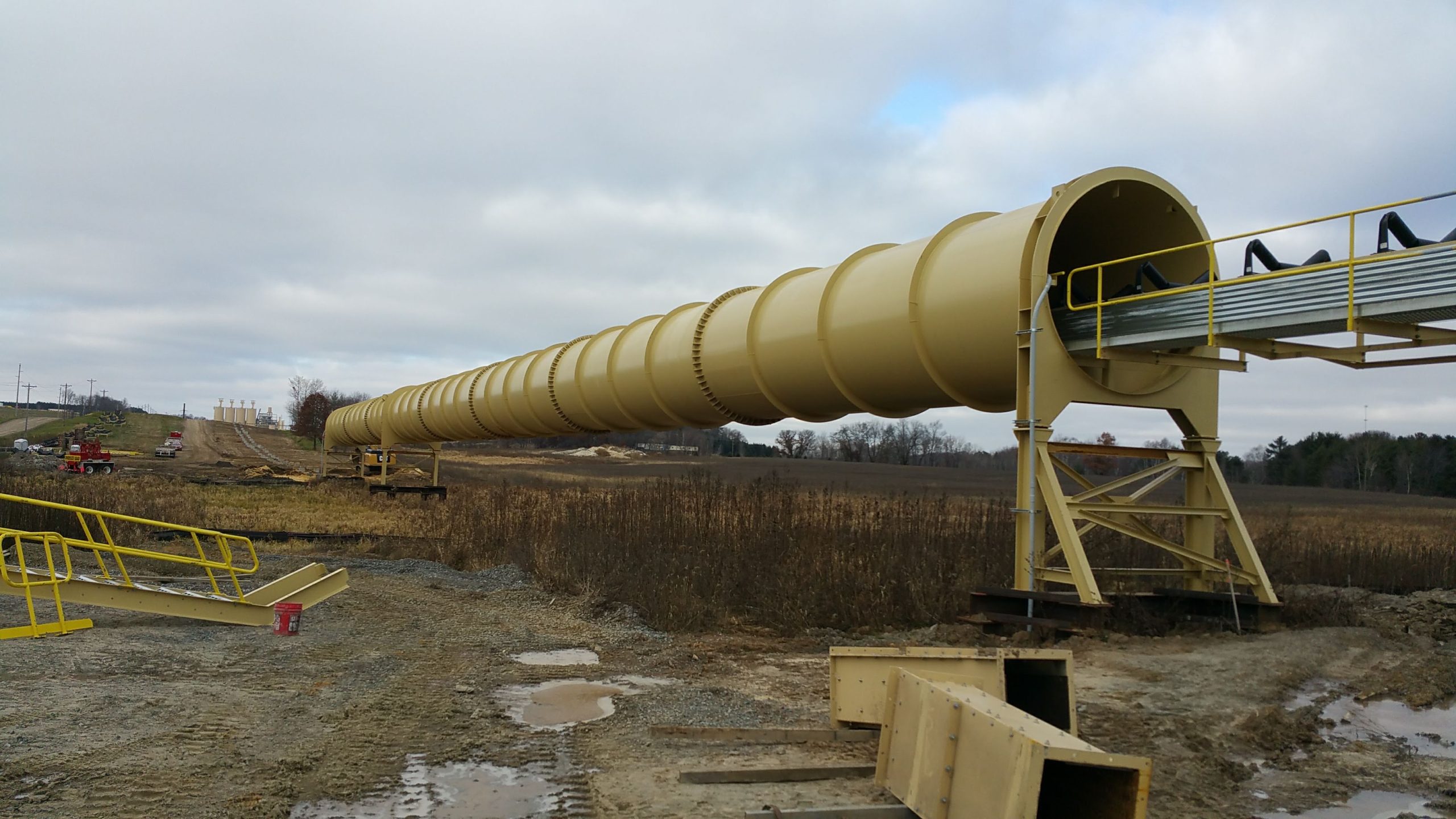 NAFCO designed, fabricated, and supplied 6,201 feet of conveyors for a Frac Sand Processing plant in Humbird, Wisconsin. The project included two 48” conveyors with transfer towers, screening building, and associated chutework. The project included 1,600 tons of steel with a two coat sophisticated paint system applied for corrosion protection. (See Pictures from WPE W drive)